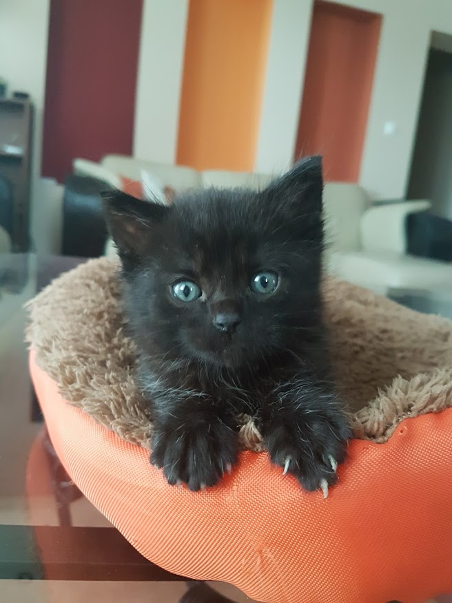 Mafi a tesójával került a gondozásunkba, elhagyatva kiabáltak egy farakás alatt. Kedves emberek találták meg őket, akik nem hagyták sorsukra a két kicsit, és kerestek számukra befogadót. Szerencsére volt épp egy gondoskodó anyacicánk, aki a szárnyai alá vette a kicsiket, és az első pár legfontosabb hetet anyatejjel táplálkozva tölthették. Így elkerülték őket a betegségek, jó kis masszív, erős cicákká cseperedtek.