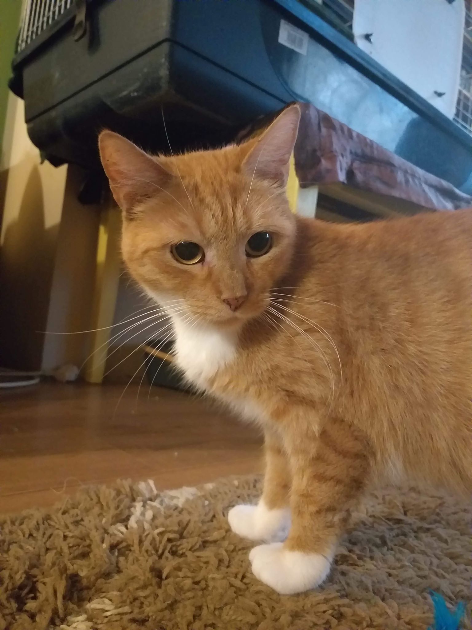 Az egyik általunk gondozott kolóniába egyszerűen csak kirakták. Félt, nem lehetett megközelíteni,  és heteken keresztül próbáltuk befogni, sikertelenül, aztán egyszer csak mellénk állt a szerencse, és egy pincébe sikerült becsukni, ahol csapdával meg tudtuk fogni.