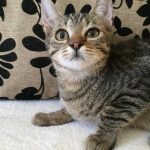 Az első időkben megközelíthetetlen volt, rettegett minden cicától és embertől. Eddigi élete során minden falatért, minden kicsi helyért küzdenie kellett., így étkezések során a kutyákat megszégyenítő módon morogva, csapkodva védte a tányérkáját. Mára szerencsére ez a viselkedés sokat változott. Az első reakció a felé nyújtott kéz láttán még mindig a félelem, de néhány másodperc után már boldogan domborítja kis hátát, arcát simogatásra, és kurjongatva követeli a folytatást. 🙂