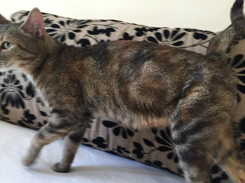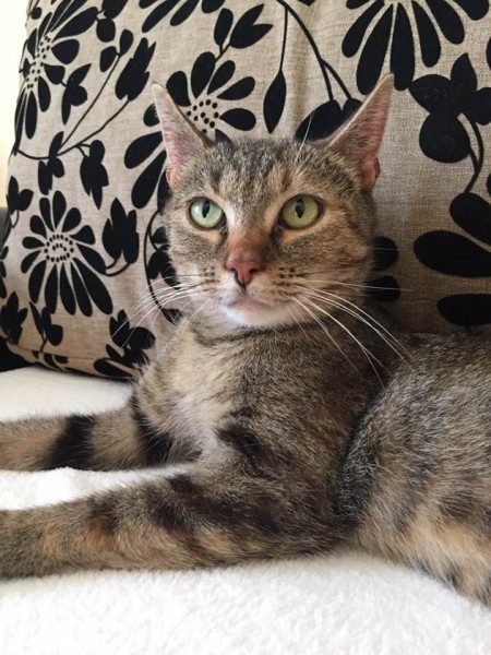 Mirzácska egy álomszép cica. Egy idős házaspár cicusa volt, akik sajnos már nem tudtak megfelelően gondoskodni róla, így került a gondozásunkba. Mirza két saját kiscicája mellett segített nekünk két másik kicsike életet is megmenteni, nagyon gondoskodó, jó mami volt. Gyönyörű zöld szeme, bundácskája különleges színei és mintája teszi őt a cirmosok között is különlegessé.  Nagyon kommunikatív cica, rendkívül beszédes és nagyon igényli a törődést, az odafigyelést. Valaki életét egészen biztosan be fogja aranyozni ez a cicus.