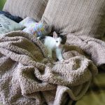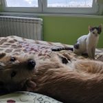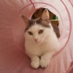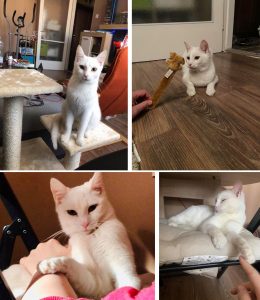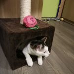 Lenke cica ősz végén került a gondozásunkba több testvérével együtt betegen. Ő volt a tesói közül talán a legfélénkebb és az egyik legbetegebb is. Sok idő volt, mire ez a különleges pofijú kislány megnyílt és elkezdett bízni az emberekben. Mikor végre megtört a jég, kiderült, hogy egy igazi cukiságbomba, aki hempereg-bukfencezik a simiért, imád az ember arcába bújni és úgy buccol akár az ember bordáiba, hogy már szinte fáj. Ez a picuri, törékeny kislány ugyan még most is meg tud ijedni a hirtelen zajoktól és hangoktól, gondoltuk is mikor eljöttek érte a gazdik, hogy na, akkor pár napig szinte színét nem látják, idő lesz mire hozzá tudnak érni, pláne mire elkezd enni végre… hát nem így lett kérem szépen, Lenke cica elég hamar otthon érezte magát az új gazdiknál, pikk-pakk feloldódott és megmutatta cuki, játékos és bújós természetét, gyakorlatilag szinte azonnal elkezdett bízni bennük. És ugye tudjuk, hogy ez szuper jel, azt jelenti, hogy „hazaértek”, jól érzik magukat a gazdikkal. Nekünk ennél nagyobb öröm nem is kell, nagyon köszönjük Orsinak és párjának, hogy beleszerettek Lenke cicába és az „elméleti” félénksége ellenére is őt választották, felkészültek, hogy sok türelem kell majd hozzá (ami végül ugye nem nagyon kellett