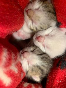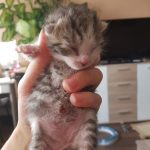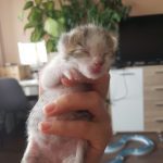 Egy nagyon kedves hölgy kért az üzenetben segítséget ennek a három kicsikének. Reggeli kocogás közben az egyetemi szántóföldön egy szakadt mózeskosár szerűségben talált rájuk. Valaki az éjszaka vagy hajnalban itt hagyta sorsukra őket. Alaposan átnézte a területet, sem több cicát sem az anyacicust nem találta a közelben, így más megoldás nem lévén a sapkájába rakta őket és így vitte haza a három kis szerencsétlent. Annyira picikék, hogy még a köldökcsonk sem esett le róluk.