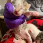 Egy elhagyott autóban sírdogáltak magányosan ezek a csöppségek, egy kedves pár karolta fel őket, és kértek számukra segítséget. A kis csapat este érkezett, akkorra már eléggé ki voltak hűlve, melegítőpárnán, betakargatva a radiátor előtt is csak reszkettek, enni sem nagyon akartak. Fecskendővel diktáltuk beléjük némi tápszert pár óránként mert nem tudtak inni cumiból, annyira fáradtak voltak. Nagyjából 1,5-2 hetesek, természetesen tiszta náthák, folyt az orruk, és tiszta csipa volt mindegyik.