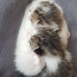 Az evéssel még vannak kisebb gondok, elég lustik és ugyan jó mennyiségeket esznek, de a cumizás nehezen megy nekik, kicsit erőltetni kell a dolgot, nem nagyon akarják megszokni azt, hogy nem a mami tudja etetni őket. Reméljük ez azért még javulni fog. Azért már szépen nődögél a pocakjuk és erősödnek is. Már bizony dorombolnak is olykor, főleg evés után, bár kicsit még inkább rádiórecsegésre hajaz a dolog, de azért próbálkoznak.