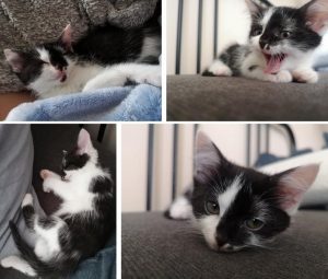 Mindig öröm, amikor egy Bárkás gazdi jelentkezik, hogy ismét szeretne tőlünk örökbe fogadni egy cicust. Na de mikor még kettő lesz a vége, az már nem egy gyakori eset. 😀 Így esett, hogy Kata és párja a tervezett egy új cica helyett egy hét alatt kettővel gazdagodott. Tavaly Csutit fogadták tőlünk örökbe a már meglevő cicájuk mellé, de úgy érezték még nem teljes a család, így Borcsára, a vasműben összeszedett kiscicára esett a választásuk, akibe az első látott kép alapján beleszerettek. Meg is volt az összhang, így nem volt kérdés, hogy költözhet a lányzó. Igen ám, de ott volt ám Repce is az ismerkedésen, aki ugyan nem volt tervezve, de ő is nagy szerelem volt nekik. Olyannyira, hogy pár nap után szóltak mikor már Borcsa náluk volt, hogy nem bírják kiverni ezt a másik cirmos lányt se a fejükből, így Repcét is örökbe fogadnák. Természetesen mi ennek nagyon örültünk, nem volt kérdés, hogy így Repce is költözhet a családba. Nagyon köszönjük a bizalmat Katának és párjának, hogy már 3 cicust is tőlünk fogadtak örökbe, jobb helyre nem is kerülhetett volna ez a kis csapat. Sok boldogságot kívánunk immáron nagycsaládosként! 🙂