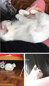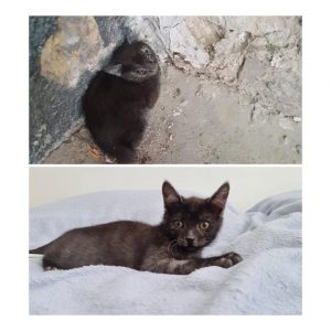 Dorcikánk télen, a legnagyobb hidegekben került hozzánk borzasztó állapotban. Egy kukában találtak rá, teljesen átfagyva, elképzelhetetlenül csont soványan. De Dorcika küzdött, kitartott és egy gyönyörű lányzó lett belőle. Dorci alapvetően egy kedves, de kissé meggyötört cicus, akinek a bizalmán még kicsit dolgozni kell. Petra és családja beleszerettek Dorciba, nem ijedtek meg, hogy a bizalmon még kicsit dolgozni kell, így a lányzó náluk lelt otthonra. Dorci szuperül érzi magát, napról-napra egyre bátrabb, ugyan magától még nem megy a simiért, de ha valaki elkezdi simogatni, akár egy órát is képes ott ülni és élvezni.