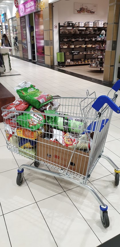 A megkeresésük jobbkor nem is jöhetett volna tekintve, hogy jelenleg több mint 40 (!) cicáról gondoskodunk plusz etetjük a kolóniáinkat. Amikor ma elmentünk a megbeszélt találkozóra alig akartuk hinni a szemünknek, 3 nagy bevásárlókocsinyi holmit raktak nekünk össze, alig tudtunk bepakolni mindent az autóba.