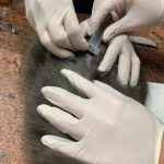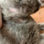Petike tegnap átesett egy alapos vizsgálaton. A doktor úr szerint nem a bolha és kullancs elleni szerekre érzékeny, ennek hatása már azonnal jelentkezett volna. Vettek bőrkaparékot és elküldték vizsgálatra, remélve kiderül mi okozza ezt a problémát. Felmerült a mosakodás hiánya miatti szőrtépés is de a bőrgomba lehetősége is. Kaptunk antibiotikumot a sebek felülfertőződésének a megakadályozására, fürdetőt és sajnos újra gallér került erre a bucifejű tündérkére.