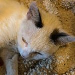 Munkahelyem egyik szadai üzletéből kértek az ott dolgozók segítséget egy rendkívül sovány anyacicus és két életben maradt picinye számára. Kimentünk megnézni őket majdnem két héttel ezelőtt, de helyhiány miatt nem tudtuk azonnal fogadni a veszélyes helyen élőket. Az ott dolgozó lányok tovább etették őket és figyeltek a kis családra. A napokban meg tudtuk oldani az elhelyezésüket, így ki is mentünk Virág lányommal csapdázni. Némi kis izgalom, jövő menő bámészkodók meghiúsított befogása után sikerrel is jártunk. A mami szerencsére kezes kis cicus, valaha biztosan gazdis cicus lehetett, a kicsik viszont emberi kéz még nem érintette.