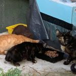 Az egyik kis gondozott kolóniánkban megjelent egy szomszéd cicuska aki ide hozta a megszületett kicsinyeit néhány hete. Pár napja az egyik kicsi lába megsérült ezért bár várni akartunk még a befogással, hiszen nincs szabad ketrecünk jelenleg, viszont a sérülése miatt szükségessé vált a kiemelése.