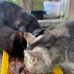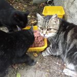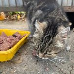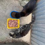 Lassan öt éve járok már minden nap etetni őket, rengeteg idő ez, nagyon de nagyon szomorú az ő történetük. Volt gazdájuk egy idős, meglehetősen zavart, gyűjtögető néni volt. Sok sok évig szaporodtak nála a cicusok tucatjával. Rengeteg cicát mentettünk ki innen, volt akiket vadságuk miatt nem lehetett örökbe adni, ők ivartalanítás után visszakerültek a nénihez. A nénike meghalt egy éve, a cicák nagyon ragaszkodtak hozzá, bármilyen rosszul is bánt velük. Egy év kellett míg a három cica lassan bizalmat szavazott nekem és megbarátkoztunk. Tudtam őket simogatni és minden nap vártak a kapuban mikor viszem a napi kis harapnivalót nekik. Kerestem a megoldást, többször hirdettem is őket, utcáról örökbe adni azonban szinte lehetetlen ezt minden cicamentő tudja. Nekik sem sikerült, még ideiglenes megoldást sem találni.