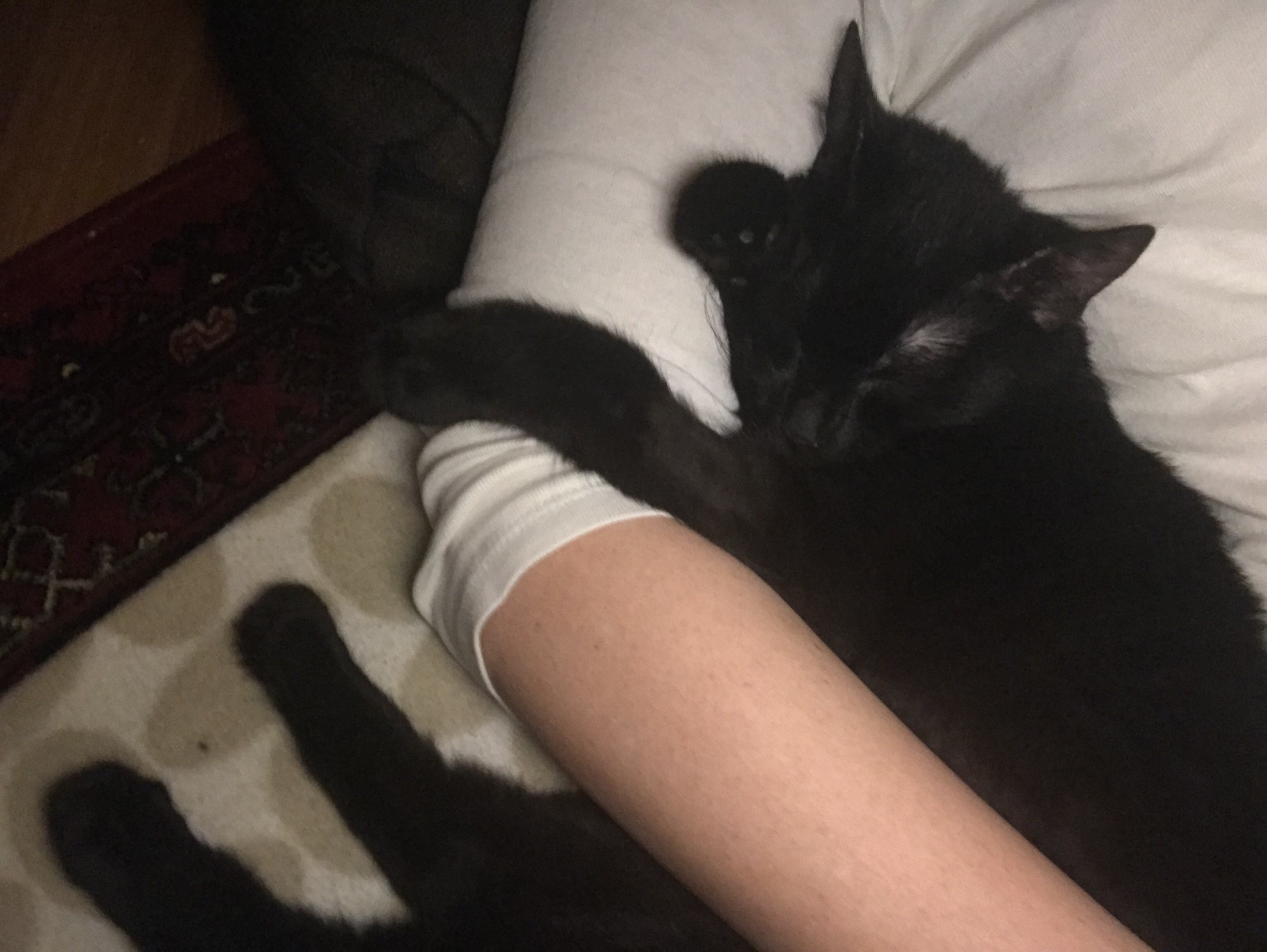 Flórácska – talán még emlékeztek – egy családi ház kertjébe született három kicsi cica egyike volt. Szocializációja sok időt vett igénybe, ezért, Flóra maradt utoljára … (Hosszasan kellett szocializálni a cicákat mire gazdihoz költözhettek, Flóra maradt utoljára… )a fekete cicákban nem mindenki látja meg a szépséget.Azután az ő élete is fordulatot vett, amikor Lilla meglátta a hirdetését, és megdobbant a szíve. Eljött megnézni és bár kértük, hogy nyitottan érkezzen, nagyon céltudatos volt, azt mondta Flóra kell neki, és ha ez az érzés nem lesz kölcsönös, akkor egyelőre nem lesz még cicája. Szerencsére Flóra is azonnal beleszeretett Lillába, és bújt, púposkodot, puszizott, mindent bevetett, hogy levegye a lábáról a gazdijelöltet.