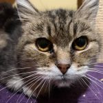 Danácska szombaton érkezett hozzánk, gazdája nemes egyszerűséggel lerakta őt egy nyitott papírdobozban a lakásunk ajtaja elé. 😞 Nagyon kedves cicuska, biztosan családban élt eddig, hiszem imádja az embereket és minden beavatkozás, kezelést zokszó nélkül tűr.
