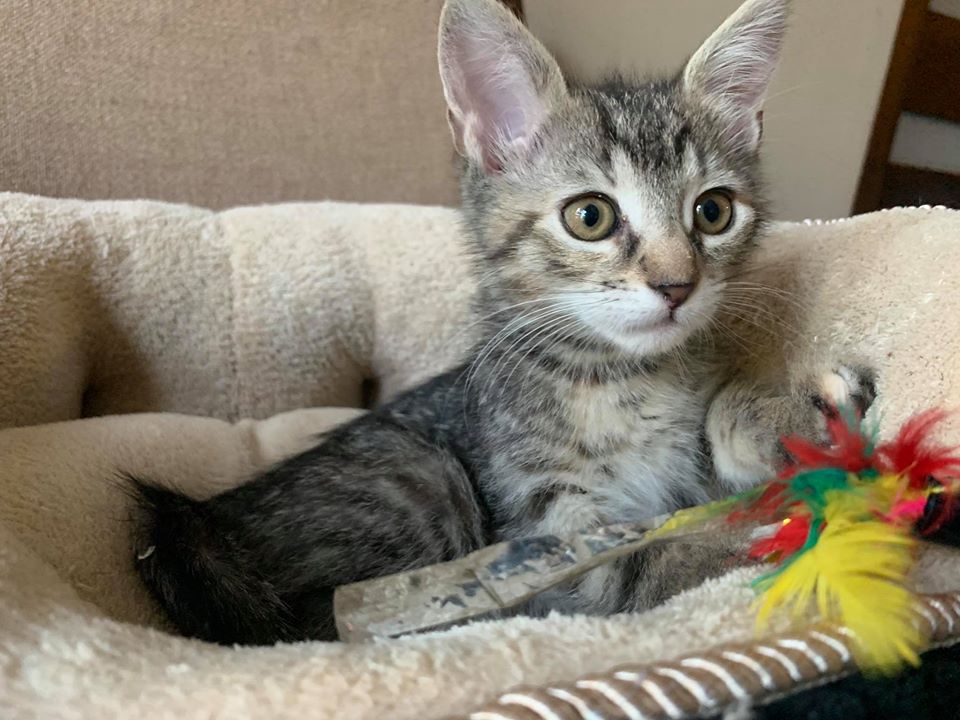Borsót zsenge ifjonc korában mentettük. Családi összefogásban, cumisüveggel nevelkedett, és vált mostanra egy illatos, bolondos, bújós cicává.
