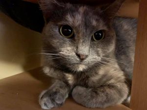 Gyömbike 2 év körüli, Fiv/Felv negatív, oltott, chipelt, rendszeresen parazitamentesített ivartalanított szürke teknőc cicalány.