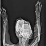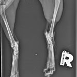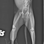 A sokktalanítás után, bódításban tudták csak megvizsgálni, borzasztóan félt és hatalmas fájdalmai voltak. Sajnos a fájdalom oka a hátsó lába iszonyatos sérülése volt. A térde szilánkosra törve és a lágy részek rendkívül súlyosan roncsolódtak. Az első orvosi vélemények szerint 75% az esélye, hogy ezt a lábat nem tudják megmenteni már, tegnap este azután az ortopéd orvos is megvizsgálta és az ő véleménye szerint sem menthető a lábikó. A mai nap stabilizálták az állapotát, erősítik kicsit és holnap sor kerül a műtétre. Az első lábacskája szintén zúzódott, nagyon be van dagadva, itt azonban megvan a remény a teljes gyógyulásra.