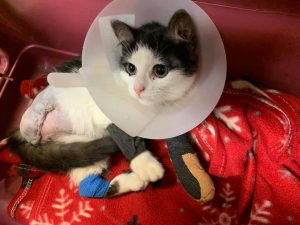 Paula cicusnak tegnap kértek segítséget a Gödöllőn épülő uszoda területéről. A segítségkérő már hetek óta gondozza, eteti ezt a kis csepp alig négy hónapos picikét. Eddig tisztázatlan körülmények között a cicus súlyosan megsérült az építkezésen az előző napokban, az első kapott képeken csupán az első láb sérülése látszott, azonban a kórházban ennél sokkal nagyobb bajra derült fény.