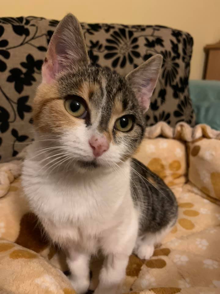 i rendelőjéből, ismételten a segítségünket kérték két a rendelőben ragadt cicával kapcsolatban. Első kis bemutatkozónk innen Nusika, a tündéri és nagyon nagyon kedves kis trikolór 4-5 hónapos kislányka. Sérülten került a rendelőbe, megtalálói nem tudták a költségeit és gondozását vállalni, ezért ragadt ott. Sérülései szépen gyógyutak, sérült farka azonban egyszerűen leszáradt, így egy mindössze 4 cm kis csonkocska ficeg a popsija végén. Ez nem akadályozza szerencsére semmiben, sőt nagyon kis cuki lett vele. 🙂